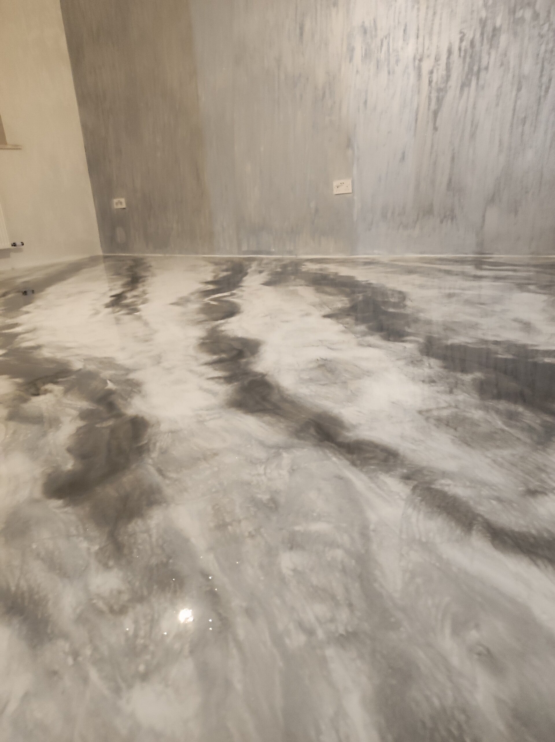 Once the surface is ready, we apply the epoxy system with precision, carefully creating your desired finish. Whether you opt for a clean, solid colour or a custom marble effect, our skilled team ensures a seamless and visually striking result. This is where your floor begins its transformation into a unique, luxurious masterpiece.